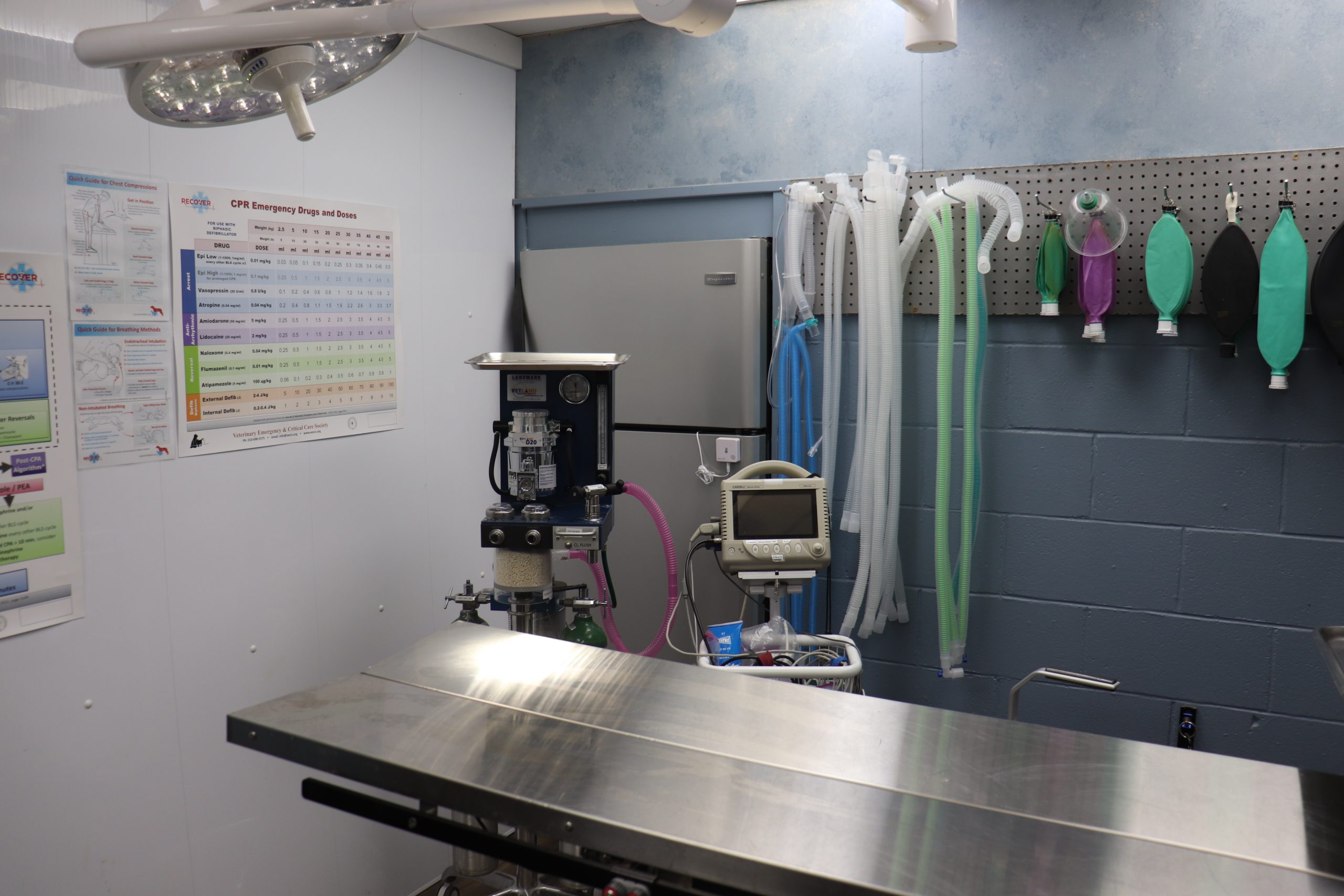Your pet is monitored closely throughout their surgery. Our Certified Veterinary Technicians record your pet’s heart rhythm, blood pressure, oxygen levels, and temperature to provide the safest outcome. Our heated surgery table and warm water blankets ensure your pet stays comfortable by maintaining their body temperature. Just like a human doctor, your Veterinarian puts on a hair and face mask and scrubs in to surgery. They then put on a sterilized gown and gloves to prevent the spread of germs. Because of our sterile surgery protocols, your pet will not require antibiotics to take home on routine procedures.